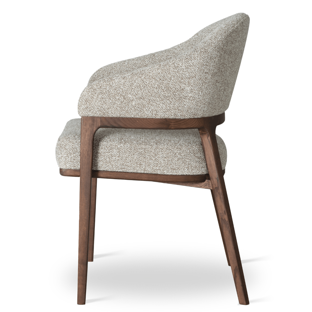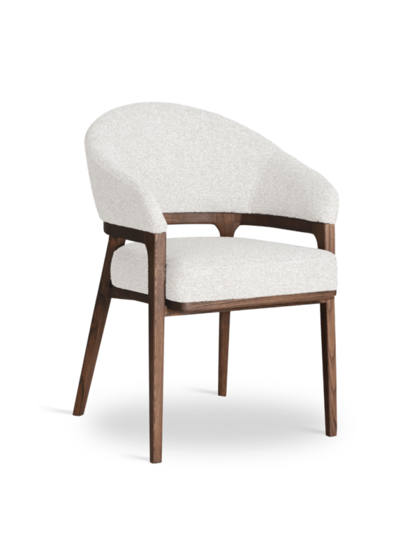 Ta izdelek lahko prilagodite svojim željam. Pregled materialov in barvJedilni stol Molise je dizajnerska mešanica elegance, udobja in moderne oblike. Oblazinjeno sedišče in naslonjalo sta subtilno ločena, vrzel med njima pa poudarja edinstveno obliko modela.