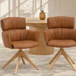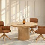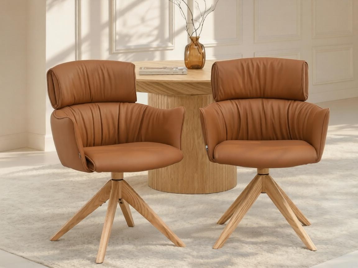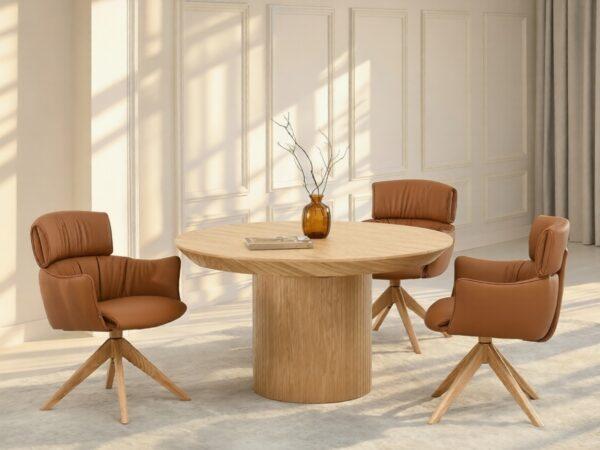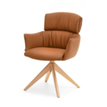 Jedilni stol Nia ima ergonomsko obliko in usnjeno oblazinjenje. Opremljen je z udobnimi nasloni za roke, kar omogoča sprostitev in udobno oporo za roke. Stabilno hrastovo podnožje zagotavlja ne le vzdržljivost, temveč tudi estetiko, ki poudarja naravni značaj pohištva. Poleg tega funkcija samodejnega vračanja poveča udobje uporabnika in zagotavlja, da se stol vedno vrne v prvotni položaj. To je idealna rešitev za tiste, ki cenijo tako dizajn kot praktičnost.