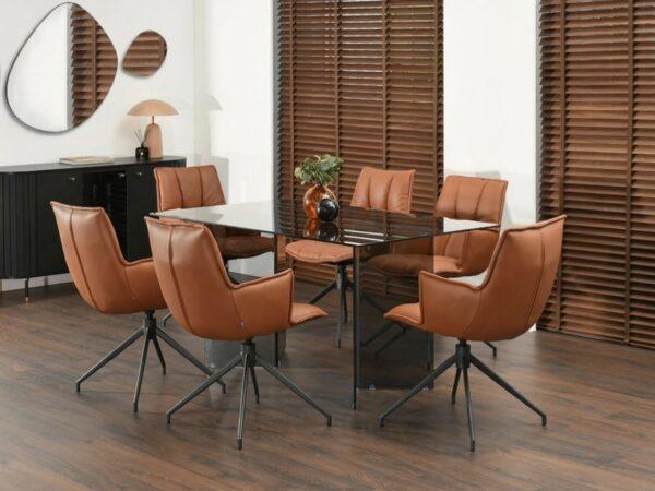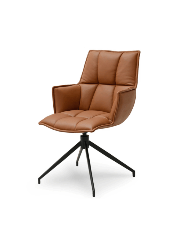 Jedilni stol Nubia je dizajnerski kos pohištva, ki je popoln za vsakodnevno uporabo. Izdelan je iz visokokakovostnega pravega usnja in okrašen z elegantnimi šivi, združuje visoko udobje z moderno obliko. Ima tudi vrtljiv sedež s praktično funkcijo samodejnega vračanja, ki znatno izboljša vsakodnevno udobje. Vrtljivi mehanizem omogoča prosto vrtenje med sedenjem, ko pa vstanete, se stol vrne v prvotni položaj.