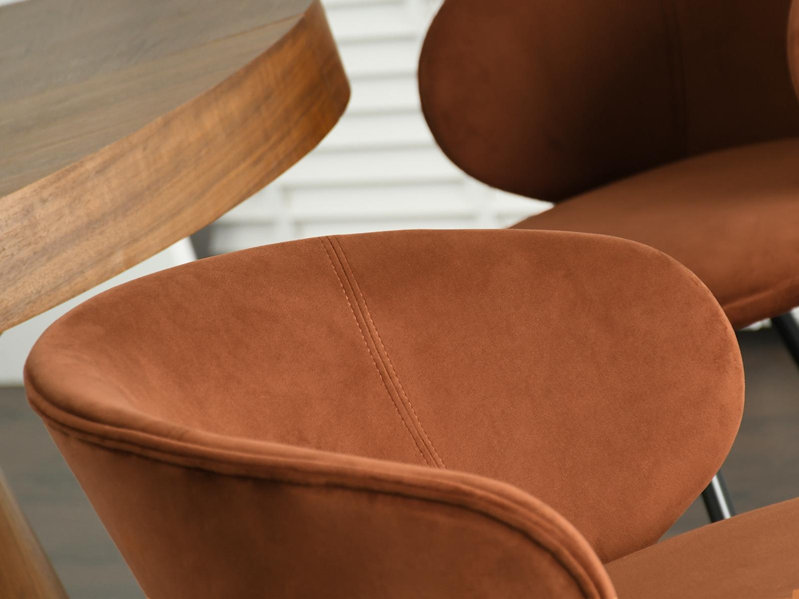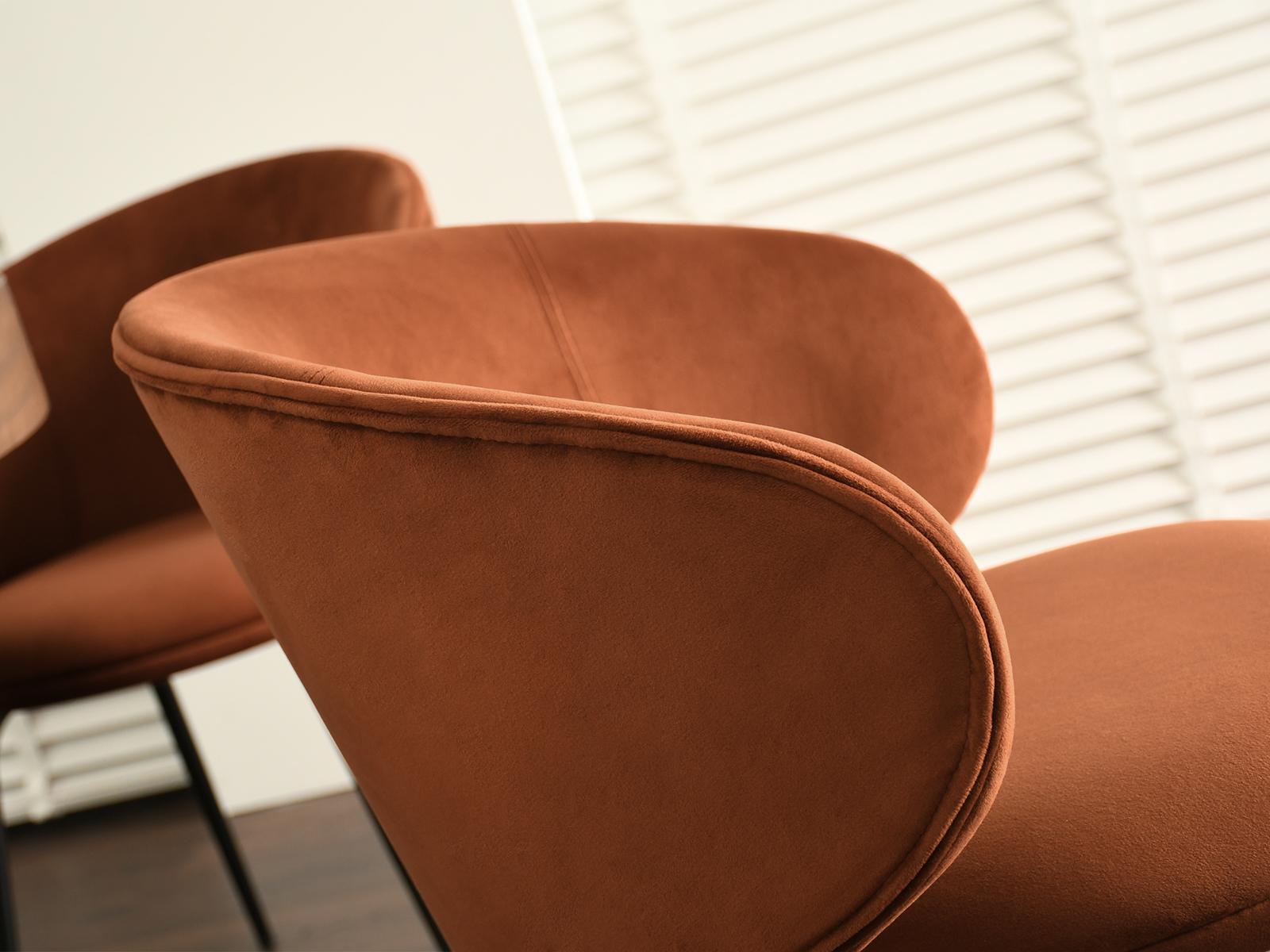 Mehak, žameten material stola Odelia zagotavlja neprekosljivo udobje sedenja, elegantna končna obdelava pa bo prostoru dodala pridih razkošja. Kovinska konstrukcija daje stolu trdnost in stabilnost, žametno oblazinjenje pa je enostavno čistiti. Z brezčasnim dizajnom se prilegajo v vsako notranjost, od klasične do moderne.