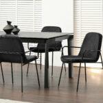Jedilni stol Padma izstopa po svojem modernem dizajnu, ki združuje funkcionalnost in estetiko. Črn oblazinjen sedež zagotavlja udobje, mehak žamet pa doda prefinjen značaj.