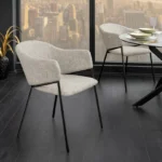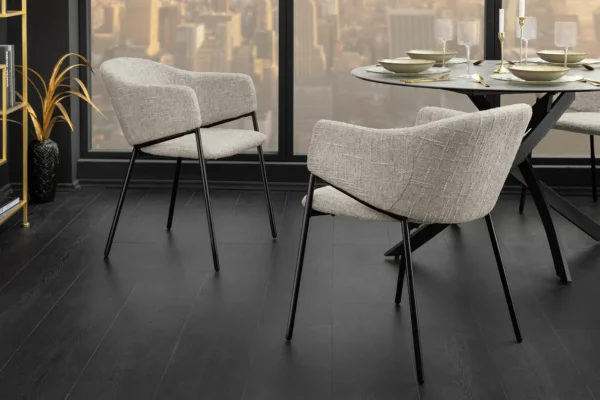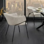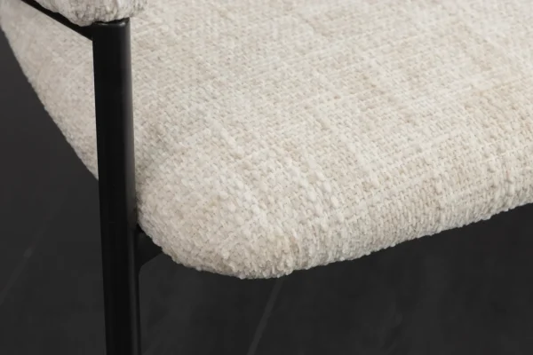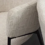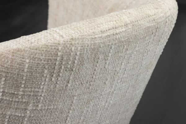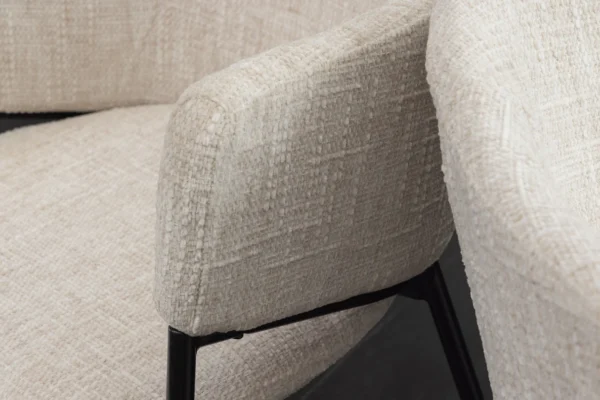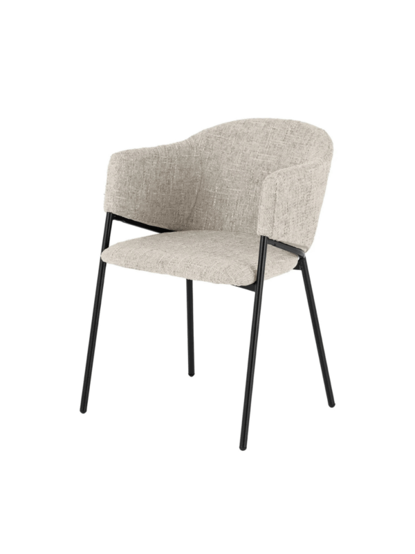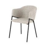 Jedilniški stol Panos s svojim trpežnim oblazinjenjem v vašo jedilnico vnese toplo in brezčasno eleganco. Teksturirana mehka površina vas vabi k sprostitvi in zagotavlja še posebej udobno sedenje. Ukrivljen hrbtni naslon z integriranimi nasloni za roke združuje eleganten videz z izjemnim udobjem sedenja.