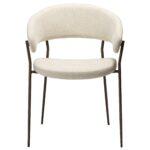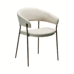 Jedilni stol Reboot združuje estetiko in funkcionalnost. Njegove vitke, elegantne noge podpirajo naslonjalo in naslone za roke, kar daje zasnovi lahkoten videz in občutek.