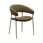 Jedilni stol Reboot združuje estetiko in funkcionalnost. Njegove vitke, elegantne noge podpirajo naslonjalo in naslone za roke, kar daje zasnovi lahkoten videz in občutek.