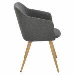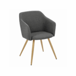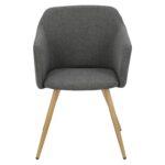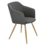 Elegantni stol Risingson je izdelan iz trpežne antracitne tkanine in kovinskih nog v imitaciji lesa. Sivo sjedalo savršeno se slaže s prirodnom bazom. Metalne noge imaju sjajnu završnu obradu, lako se čiste i otporne su na prljavštinu. Ergonomski oblik naslona postignut je zahvaljujući izdržljivoj, savijenoj šperploči. Nasloni za ruke odgovarajuće visine povećavaju udobnost sjedenja.