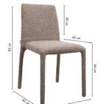 Jedilni stol Rua je eleganten in vizualno lahek element notranje opreme, ki odlično polepša vsak prostor. Svetlo bež oblazinjenje iz 100 % poliestra ima značilno otipno teksturo, ki zagotavlja prijeten občutek. Vitka oblika in preprosti proporci dajejo stolu sodoben in harmoničen videz, konstrukcija iz kovinskega okvirja, lesa in vezane plošče pa zagotavlja vzdržljivost in stabilnost med vsakodnevno uporabo.