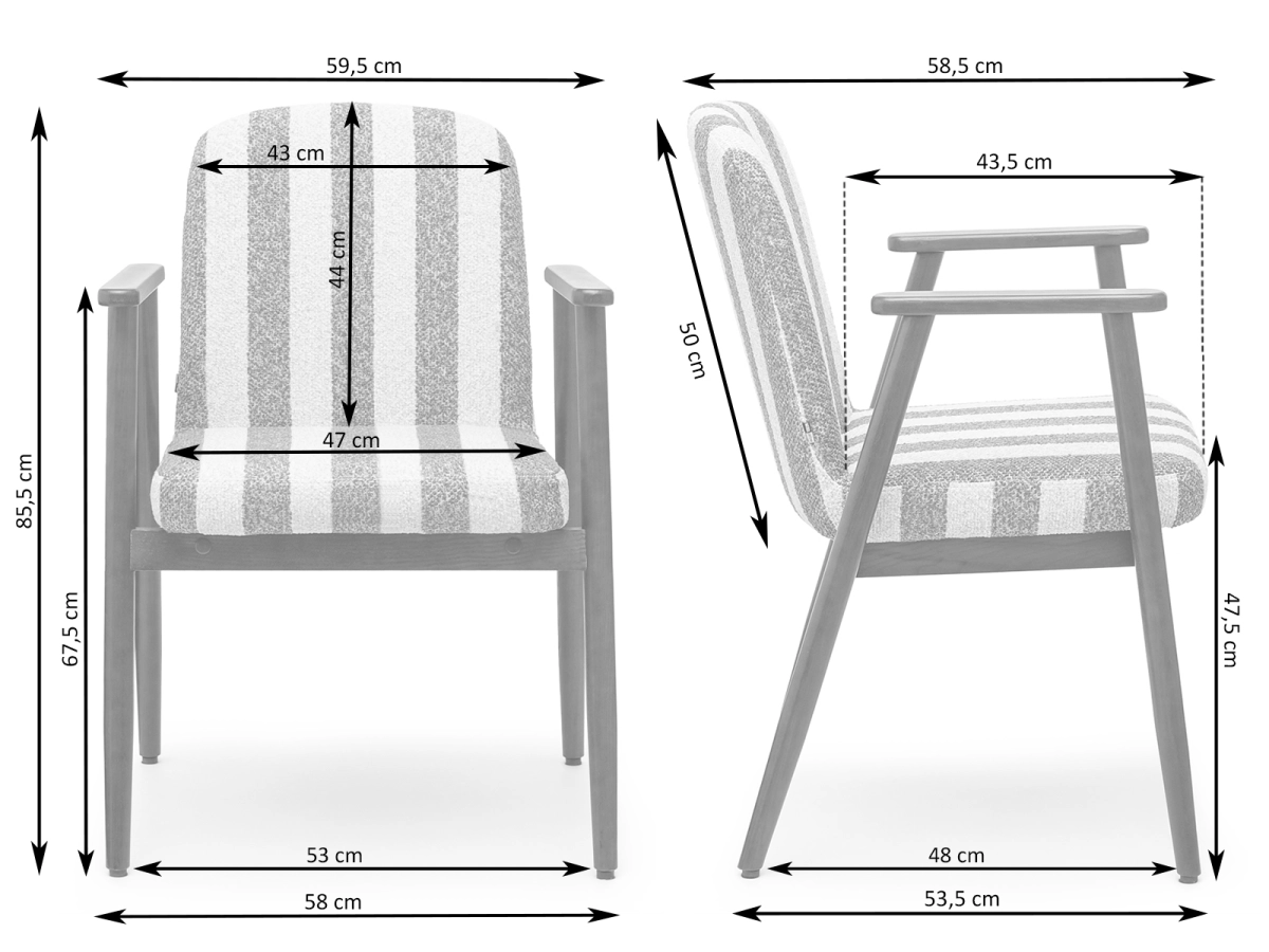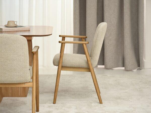 Jedilni stol Santorini je odlična izbira za ljubitelje sodobne in moderne notranjosti. Črtasto oblazinjenje mu daje lahkoten in eleganten občutek, leseno podnožje pa poudarja topel značaj modela. Popolnoma se poda k lesenim mizam in dodatkom v nevtralnih tonih ter ustvari prijetno vzdušje.