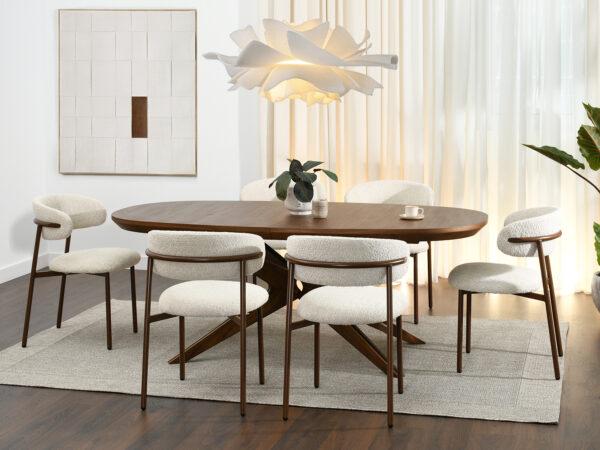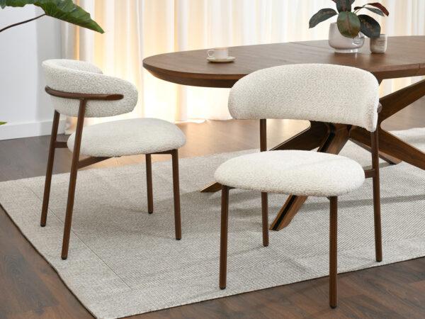 Jedilni stol Sule bouclé se bo odlično podal v notranjost v japonskem slogu, kjer so pomembni preprostost, naravni materiali in umirjene barve. Njegova prijetna tekstura in mehak odtenek se bosta dobro podala tudi v aranžmaje v skandinavskem slogu, saj bosta prinesla toplino in harmonijo.