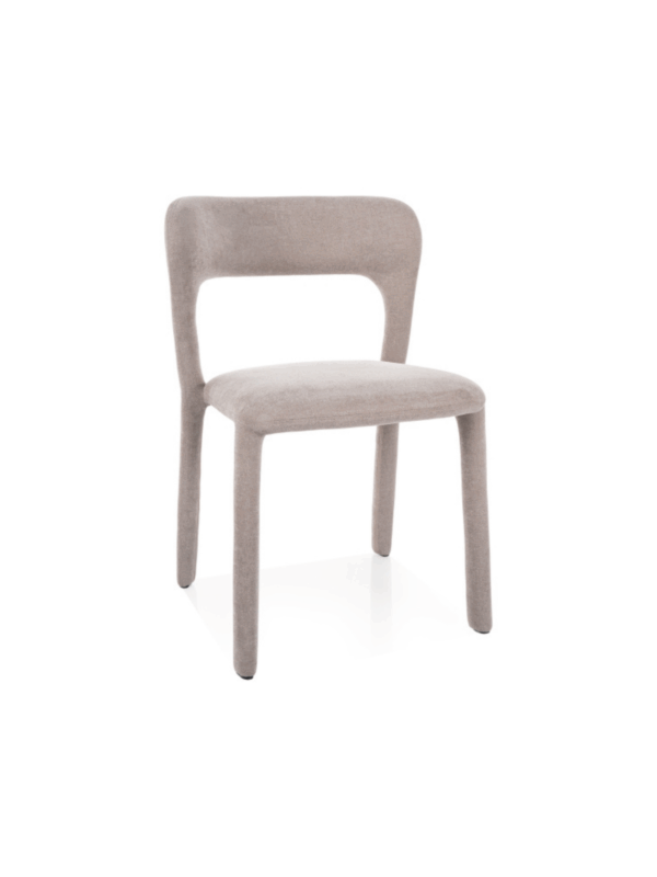 Jedilni stol Trevi je v celoti oblazinjen v prijetno tkanino Wind 82. Bež odtenek materiala se lepo ujema z nežno strukturo in v notranjost vnaša topel in prijeten poudarek, vitke oblazinjene noge pa dopolnjujejo videz.