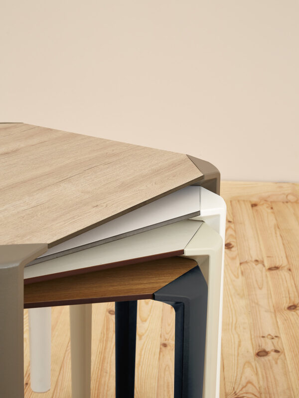Ta izdelek lahko prilagodite svojim željam. Pregled materialov in barvS svojim minimalističnim dizajnom, ki ga je ustvaril Aitor García de Vicuña iz AGV Estudio, se bo ta miza popolnoma prilegala v želeni prostor. Na voljo je v več barvnih kombinacijah, zaradi enostavne trajnosti in materialov, odpornih na različne vremenske vplive (polipropilen ojačan s steklenimi vlakni), pa je primeren tudi za gostinske objekte in zunanje prostore.