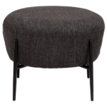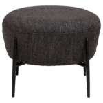 Ta okrogel podstavek za noge odlično dopolnjuje različice z visokim in nizki naslonjali iz iste kolekcije. Uporabite ga kot oporo za noge ali dodaten sedež okoli klubske mizice. Tabure je oblečen v črno blago iz bukleja in stoji na štirih črnih kovinskih nogah.