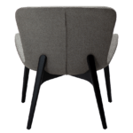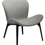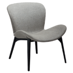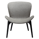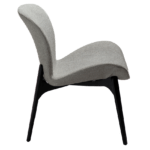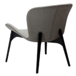 Ta salonski fotelj izstopa po svojih elegantnih detajlih . Tanek, zaobljen sedež in naslonjalo sta oblazinjena z rjavo tkanino iz bukleja. Osnova je sestavljena iz nog iz črnega jesenovega lesa z vidnimi vlakni.