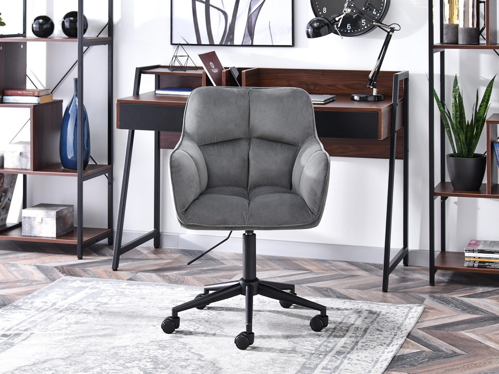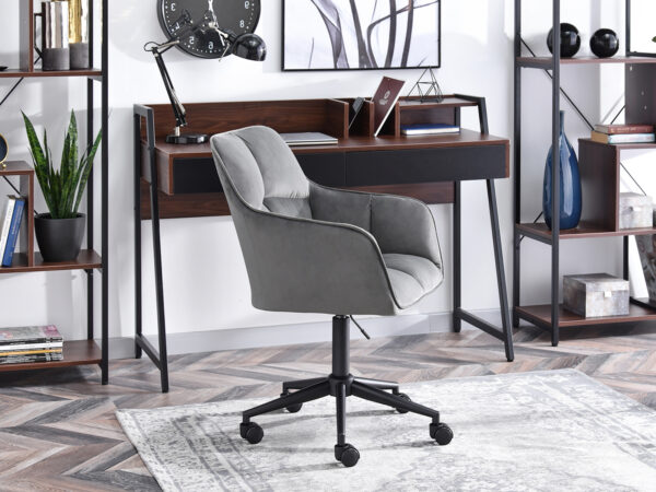 Pisarniški stol oblečen v žamet v več barvah bo pritegnil vse starostne skupine. Lepo se bo ujel v sobah, pisarnah in salonih. Udoben naslon za roke Vam bo omogočil prijetno delo.