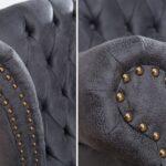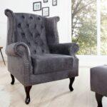 Fotelj Koen ima elegantno temno rjavo masivno leseno podnožje. Oblazinjenje iz mikrovlaken v starinski sivi barvi je dopolnjeno z detajli, kot so okrasni šivi.