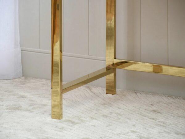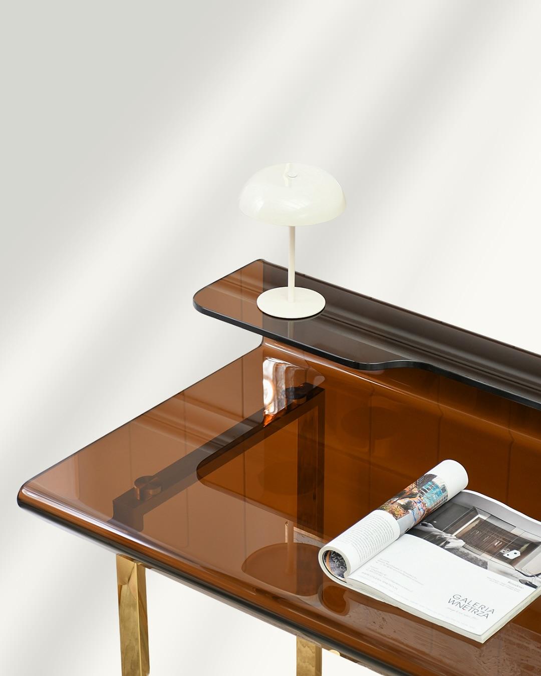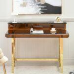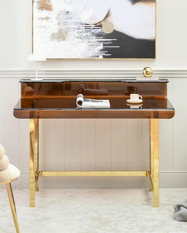 Pisarniška miza Donni je odlična izbira za sodoben delovni prostor ali glamurozno domačo pisarno. Kombinacija bleščečih zlatih nog in elegantne tonirane mizne površine ustvarja udoben, sodoben občutek. Miza ne služi le praktičnemu namenu – kot delovni prostor – temveč služi tudi kot prefinjen dekorativni element.