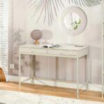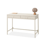 Pisarniška miza Ulva je vsestranski kos pohištva, ki se odlično obnese kot delovni prostor v domači pisarni ali kot elegantna toaletna mizica v spalnici ali garderobi. Dva praktična predala omogočata shranjevanje potrebščin, dokumentov ali kozmetike. Kompaktna velikost mize omogoča, da se prilega tudi v majhne prostore, saj ponuja tako funkcionalnost kot estetiko.