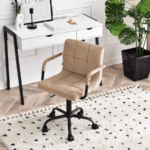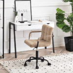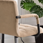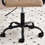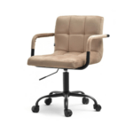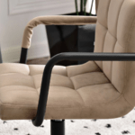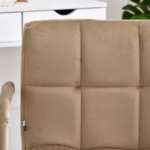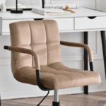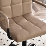 Klasična oblika pisarniškega stola Selda v kombinaciji s premišljenimi barvami in materiali ustvarjajo izdelek, ki se popolnoma prilega sodobnim interierjem. Bež žamet, ki prekriva sedež, se čudovito lesketa in spreminja videz glede na jakost svetlobe. Prijeten je tudi na dotik, zato je delo na njem čisti užitek. Po drugi strani pa se prešivanje odlično obnese z žametno tkanino in ustvari prijetno kompozicijo.
