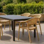 Gostinski stol Caserta združuje polipropilen, odporen proti UV-žarkom, s tkanim plastičnim trakom. Njegov zanimiv hrbtni naslon ni le privlačen, ampak tudi udoben. Mehki trakovi sledijo obliki vašega hrbta, največja nosilnost pa je 120 kg. Stol je zložljiv, z največjo zmogljivostjo zlaganja 6 kosov.