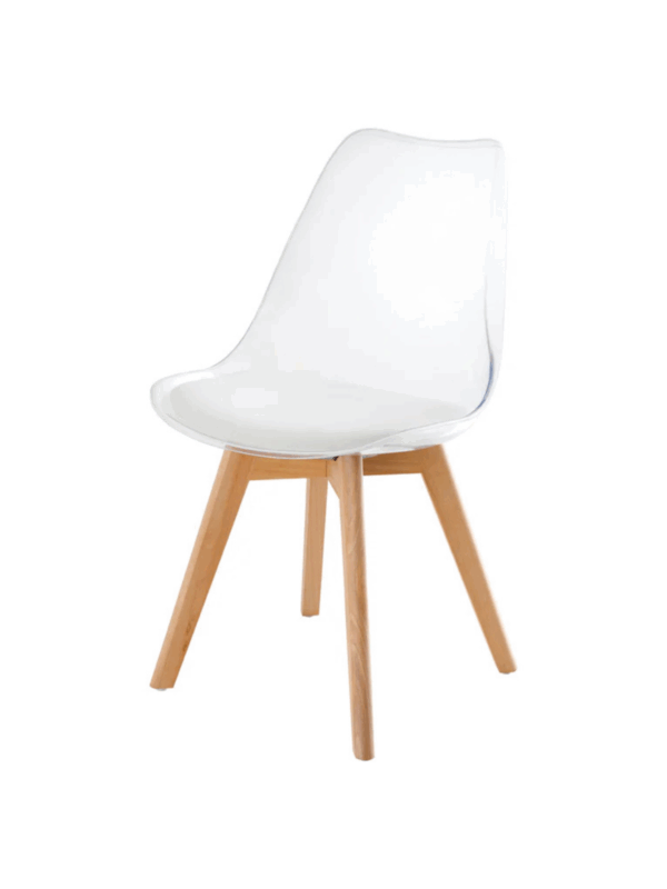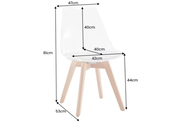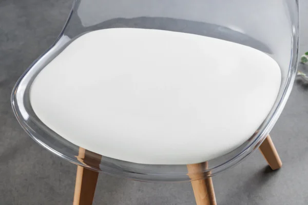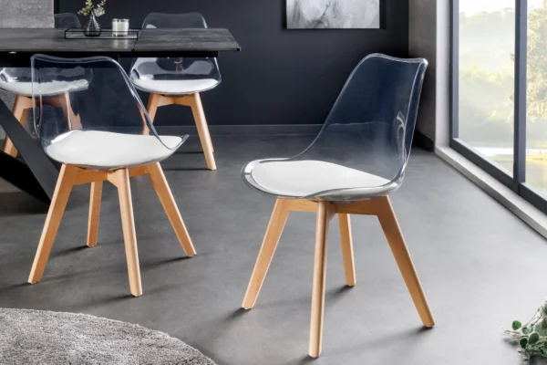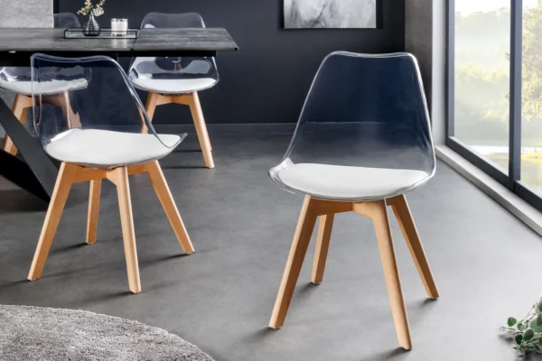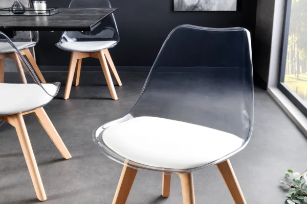 Jedilni stol Freja s prozornim naslonjalom in obrobo okoli sedeža bo presenetljiv dodatek vaši jedilnici.