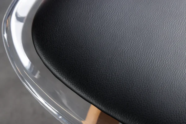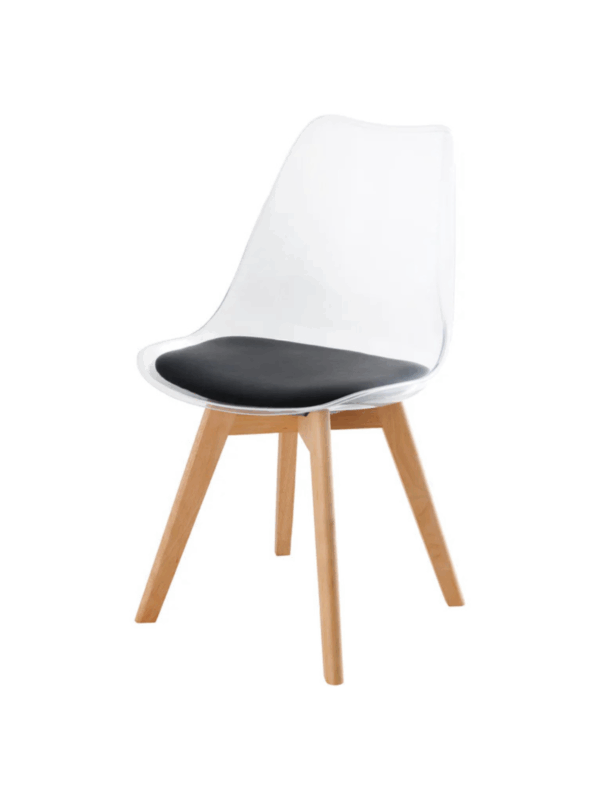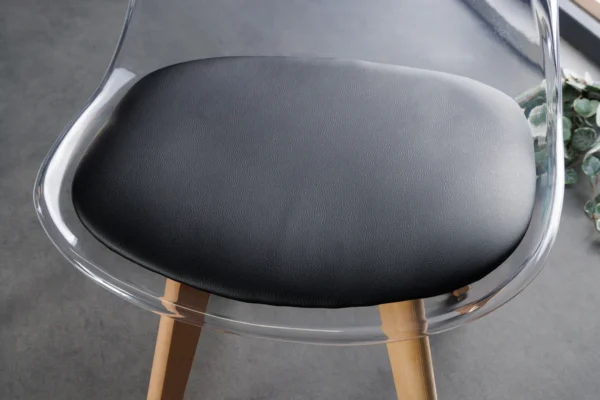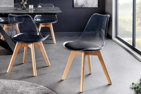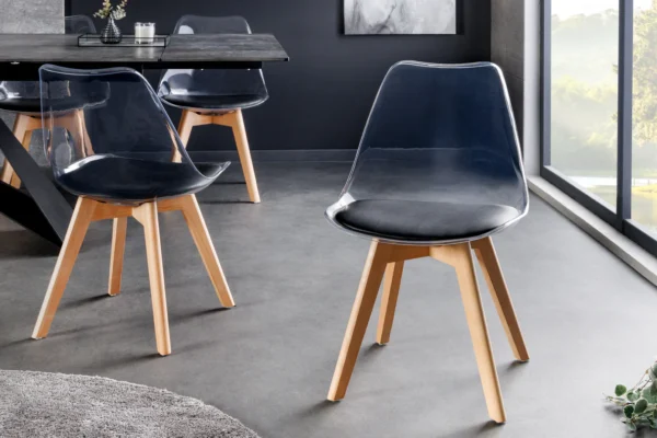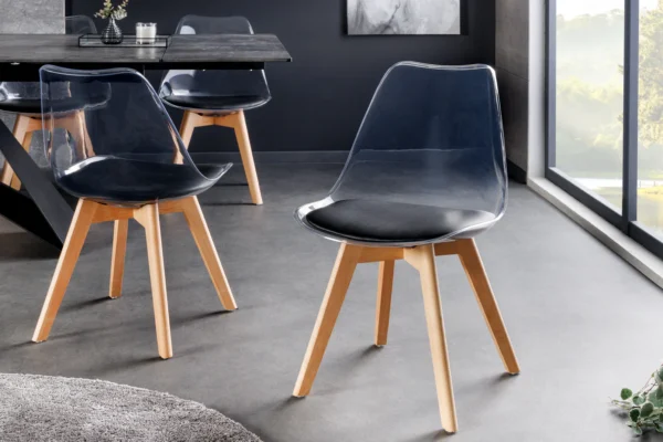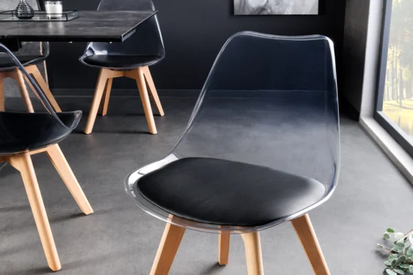 Jedilni stol Freja s prozornim naslonjalom in obrobo okoli sedeža bo presenetljiv dodatek vaši jedilnici.
