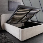 Spite v stilu s posteljo Deco. Mehka buklé površina in elegantna oblika jo uvrščata med izstopajoče modele, ki združujejo udobje z vsakodnevno praktičnostjo.