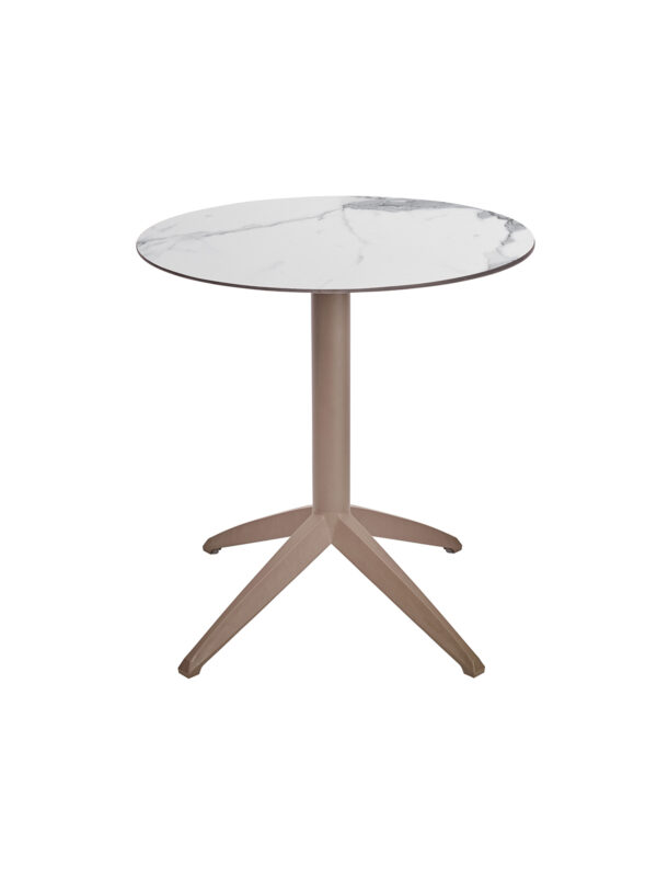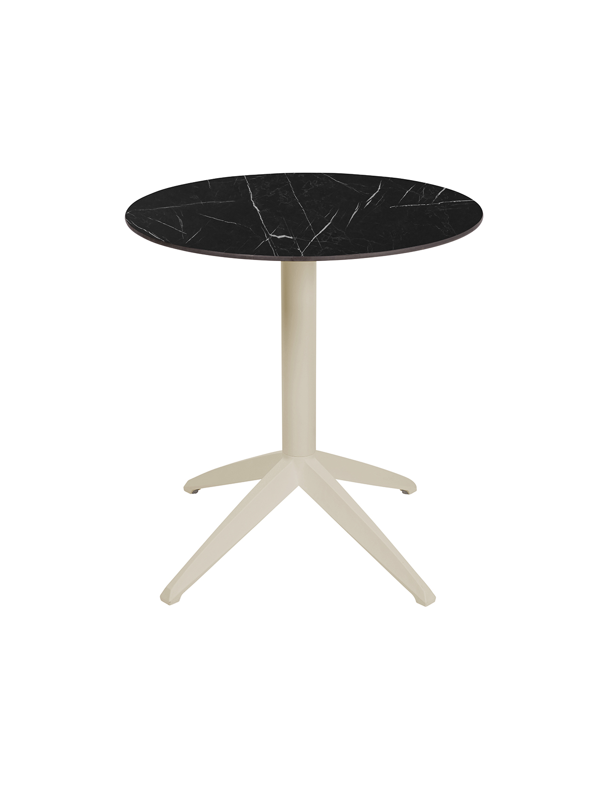 Kolekcija miz QUATRO FOLD zavzame zelo malo prostora, ko ni v uporabi. Zahvaljujoč edinstvenemu sistemu zlaganja, enostavni trajnosti in materialom, odpornim na različne vremenske razmere, je primeren tudi za gostinske lokale in zunanje prostore. Ta model mize je na voljo v več barvah, lahko pa jih kombinirate z različnimi modeli in barvami naših stolov.