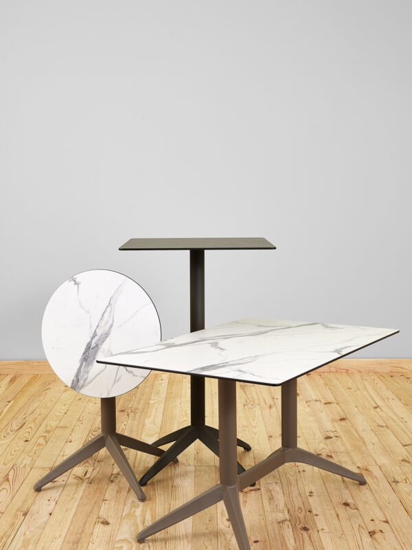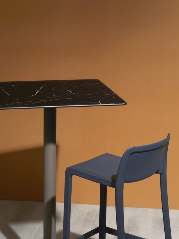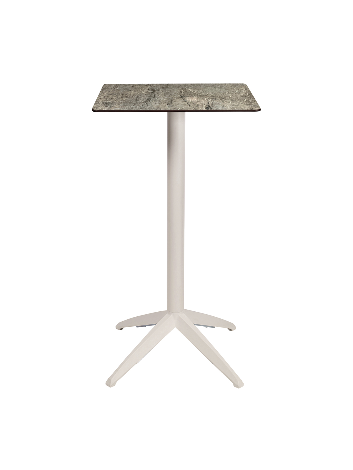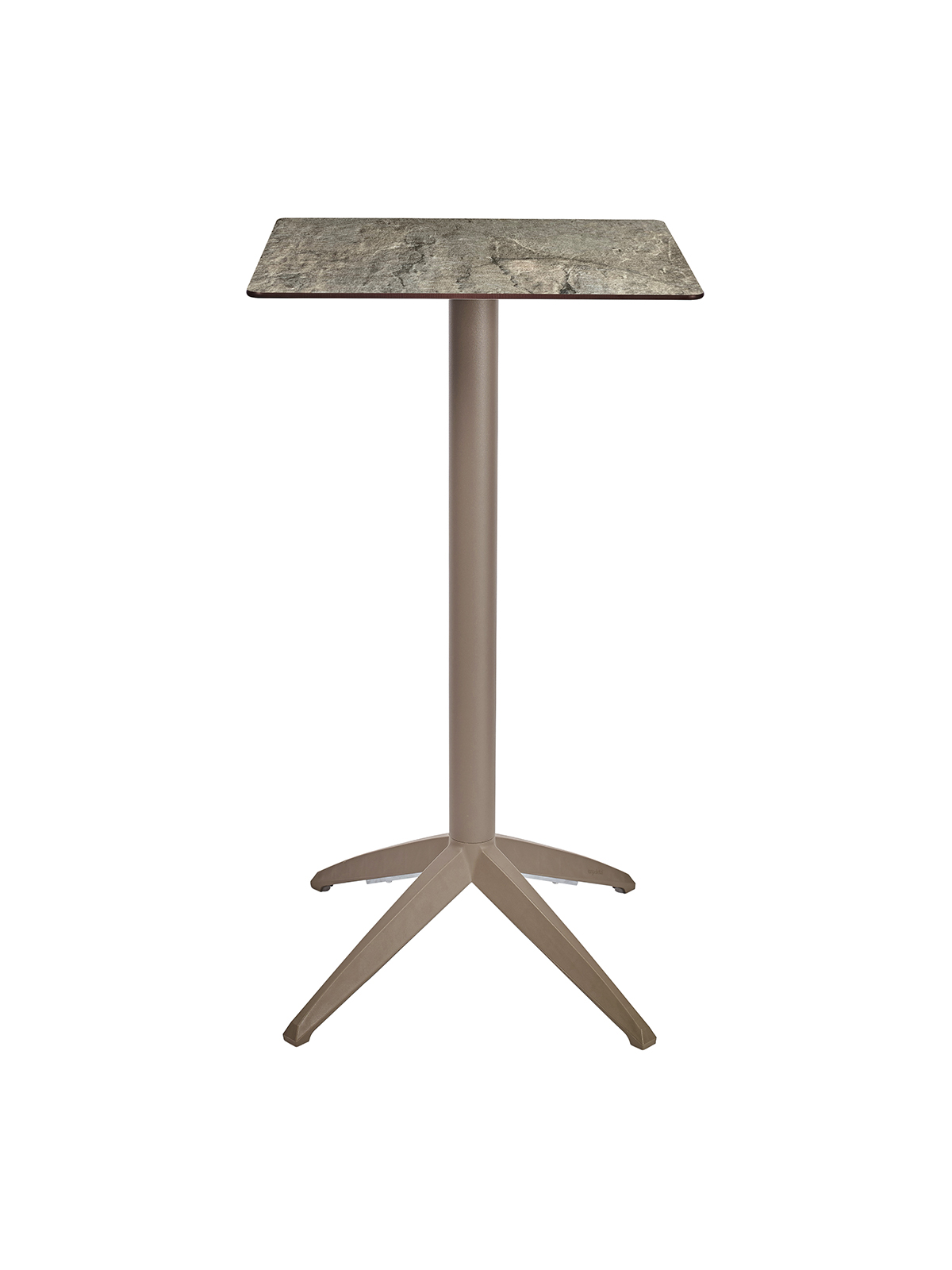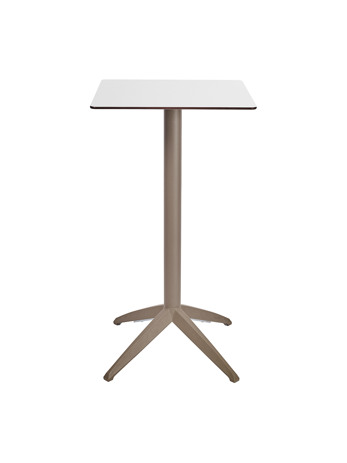 Barska izvedba mize QUATRO FIX. Zaradi preproste trajnosti in materialov, odpornih na različne vremenske razmere, je primeren tudi za gostinske lokale in zunanje prostore. Ta model mize je na voljo v več barvah, lahko pa jih kombinirate z različnimi modeli in barvami naših stolov – priporočamo barske stole ATTIC.