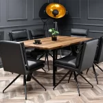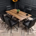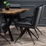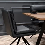 Nekonvencionalno celoto modela Rolph tvorijo prešite blazine, ločeno oblazinjene z eko usnjem in štirinožnim podnožjem. Enostavnost čiščenja tovrstnega materiala bo praktična rešitev v vsaki jedilnici. Dodatne možnosti vrtljivega mehanizma in pomanjkanje naslonov za roke pa bodo olajšale premikanje in pospravljanje stola pod mizno ploščo. Plastična noga, ki zaključuje kovinsko nogo, ščiti tla pred praskami.