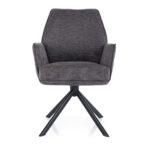 Vrtljiv jedilni stol Ronald s funkcijo vračanja v prvotni položaj, oblazinjen v material Brego, s sediščem in naslonjalom zanimivega dizajna ter kovinskimi nogami, je na voljo v štirih odtenkih.