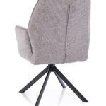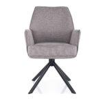 Vrtljiv jedilni stol Ronald s funkcijo vračanja v prvotni položaj, oblazinjen v material Brego, s sediščem in naslonjalom zanimivega dizajna ter kovinskimi nogami, je na voljo v štirih odtenkih.