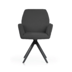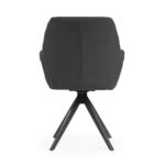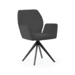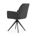Udoben stol s črnimi, trdnimi kovinskimi nogami ima širok sedež, prekrit z udobnimi nasloni za roke, ki razbremenijo vaše roke med obroki ali delom. Vrtljiva noga poveča udobje uporabe in lahko razveseli tako mlajše kot starejše člane gospodinjstva.