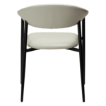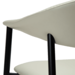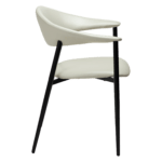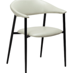 Stol z naslonjalom, ki se razširi v udobna naslonjala za roke, ima okrasne šive in udobno sedišče. Prevlečena je z belim eko usnjem. Noge tega stola so kovinske in črne barve.