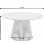 Okrogla miza Sansa s premerom 140 cm v hrastovem furnirju in letvenim teksturiranim podnožjem bo v vaš jedilni prostor vnesla najnovejše trende.