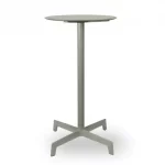 Visoka okrogla gostinska miza Sputnik je namenjena za notranjo in zunanjo uporabo. Podnožje je izdelano iz aluminija in poliamida, mizna plošča pa iz HPL. Krožnik in stojalo sta v enakih barvah.