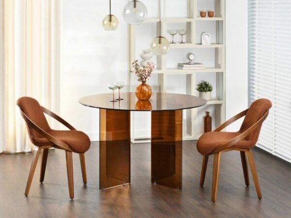 Jedilna miza Maine je sodoben kos pohištva, ki se dobro poda tako v dnevne sobe kot jedilnice. Njena prozorna oblika doda pridih lahkotnosti in ne preobremeni prostora, zaradi česar je idealna za manjše sobe.
