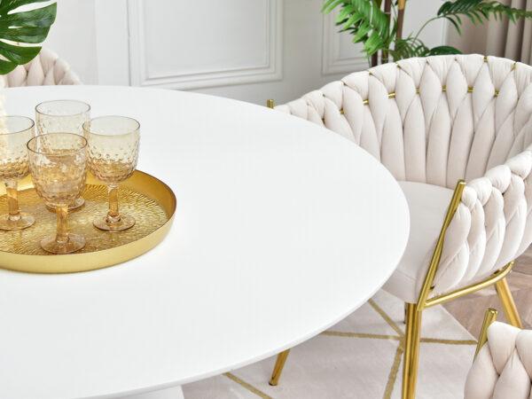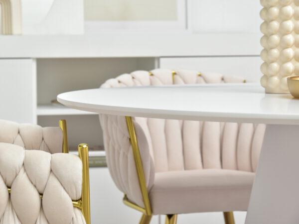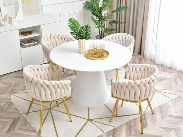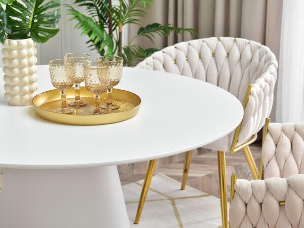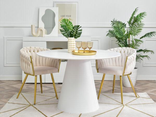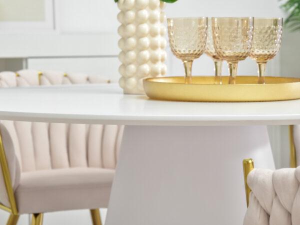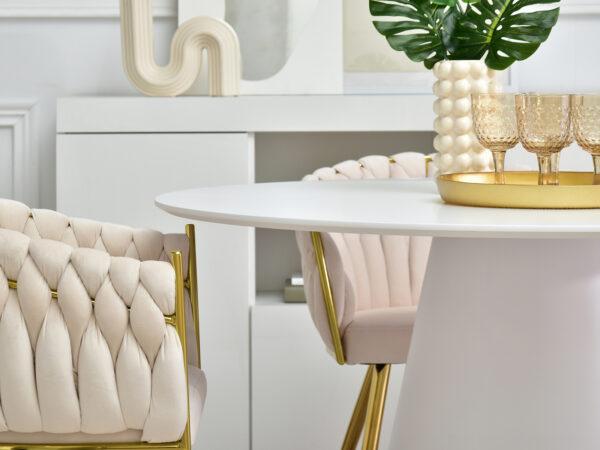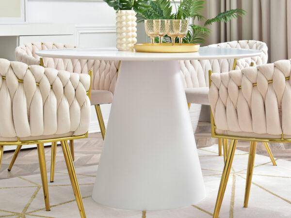 Izrazite linije jedilne mize Sioux v kombinaciji s svetlo barvo površine ustvarjajo edinstveno kompozicijo, ki bo osrednja točka jedilnice. Stožčasto oblikovano podnožje ni le privlačen vizualni poudarek, temveč zagotavlja tudi stabilnost in trdnost konstrukcije.