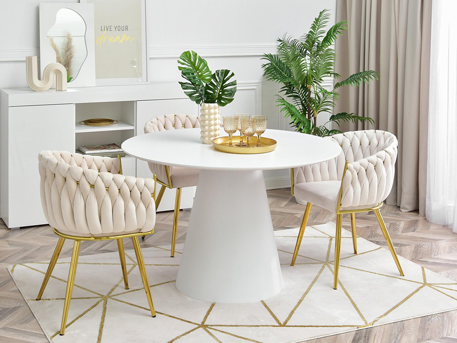 Izrazite linije jedilne mize Sioux v kombinaciji s svetlo barvo površine ustvarjajo edinstveno kompozicijo, ki bo osrednja točka jedilnice. Stožčasto oblikovano podnožje ni le privlačen vizualni poudarek, temveč zagotavlja tudi stabilnost in trdnost konstrukcije.