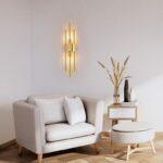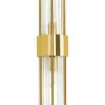 Stenska svetilka Amanda je moderna stenska svetilka, izdelana iz kombinacije steklenih senčnikov in jekla. Skozi prozorna senčnika se prebije snop svetlobe in se ustavi na zlato-oranžnih ceveh, kar ustvari nenavaden vizualni učinek.