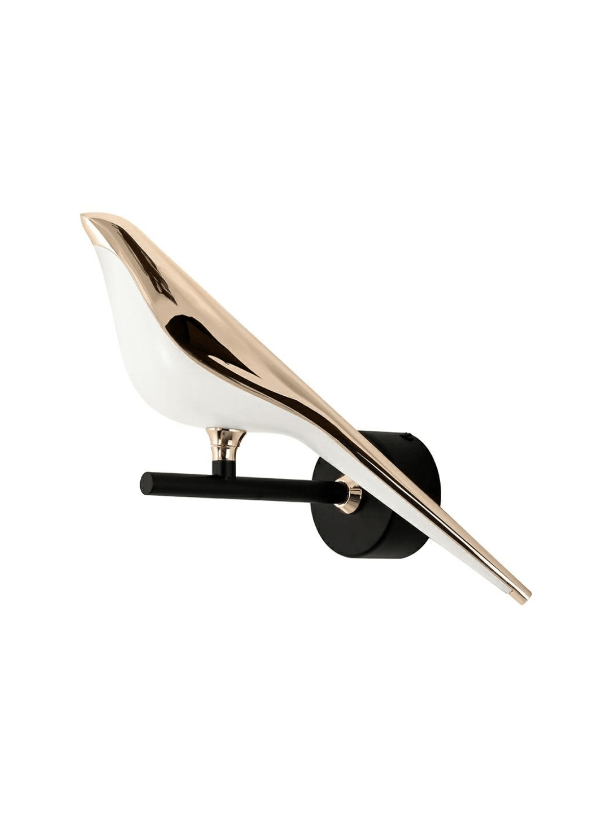 Stenska svetilka Bird je dizajnerska svetilka iz akrila in kovine. Bela in zlata ptica je nameščena na črnem okvirju, ki spominja na vejo. Zasnova napeljave omogoča desno ali levo montažo. Ta svetilka vam omogoča ustvarjanje edinstvenih, igrivih aranžmajev.