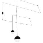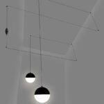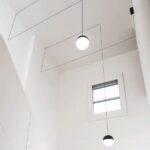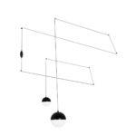 Stenska svetilka Bowl Duo je minimalistična svetilka z izvirnim dizajnom, sestavljena iz dveh steklenih senčnikov, dolgega kabla in kovinskega nosilca. Zahvaljujoč uporabi 5-metrskega kabla v vsakem senčniku lahko svetilko montirate na kreativen način, tako da izmenično napeljete kabel in ustvarite geometrijske oblike.