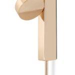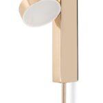Stenska svetilka Clarid je izdelana iz aluminija in jekla v zlati barvi z vgrajenim virom svetlobe. Senčilo je nastavljivo, tako da lahko svetlobni tok usmerite v želeno smer. V spodnjem okroglem delu svetilke je skrito stikalo z regulatorjem, s katerim lahko svetilko prižigamo in ugašamo ter prilagajamo jakost svetlobe. Gumb je obešen na 77 cm dolgi vrvi, ki vam omogoča prilagajanje višine glede na vaše potrebe. Clarid se odlično prilega tako modernim kot klasičnim interierjem.