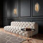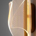 Stenska svetilka Frost je izjemno učinkovita kombinacija aluminija in jekla v sijoči zlati barvi. Glavni dekorativni element je senčnik nepravilne oblike iz akrila. Ko je svetloba prižgana, lepo prodre skozi senčnik in ustvari čudovit svetlobni učinek.