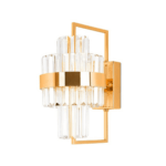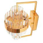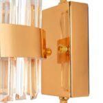 Stenska svetilka Impero je elegantna svetilka, ki bo odlično okrasila notranjost v glamuroznem stilu. Glavni okrasni element je efekten kristalni senčnik, nameščen na pravokotnem okvirju iz jekla zlate barve. Kombinacija materialov pomeni, da ob vklopu svetloba prodre skozi prozoren senčnik in oddaja mehko razpršeno svetlobo.