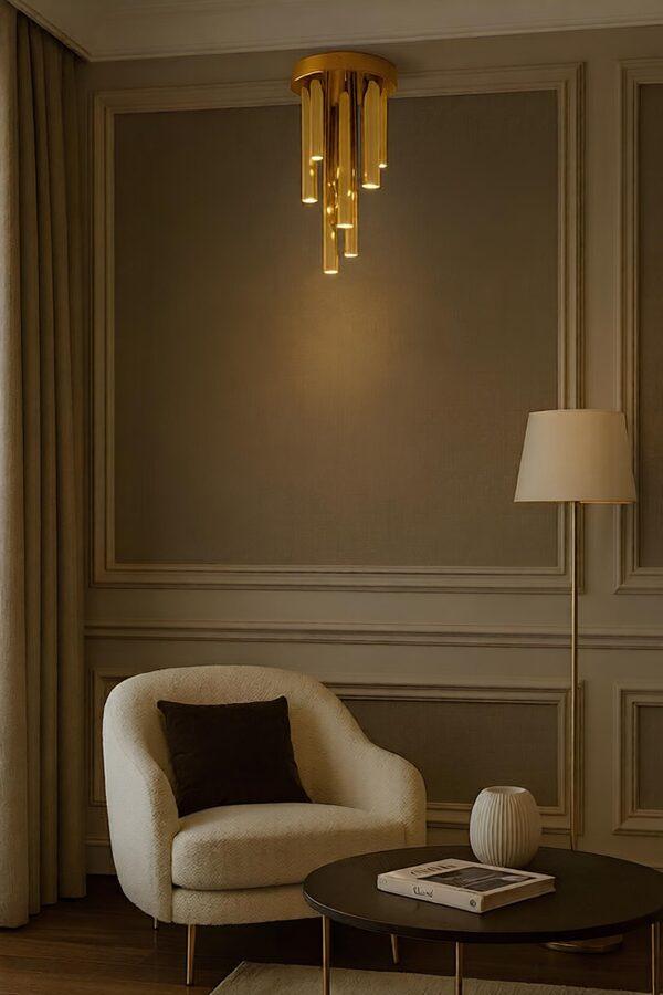Stenska svetilka Organo je presenetljiv element, ki združuje eleganco s sodobno prefinjenostjo. Izdelana iz kovine z zlatim zaključkom, Organo navdušuje s svojo harmonično kompozicijo. Devet svetlobnih virov osvetljuje notranjost in ustvarja toplo vzdušje.