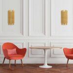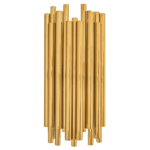 Stenska svetilka Tubo je v celoti izdelana iz zlatega nerjavečega jekla. Senčnik iz nepravilno razporejenih elementov omogoča, da se svetlobni tok razprši na prijeten in zanimiv način.