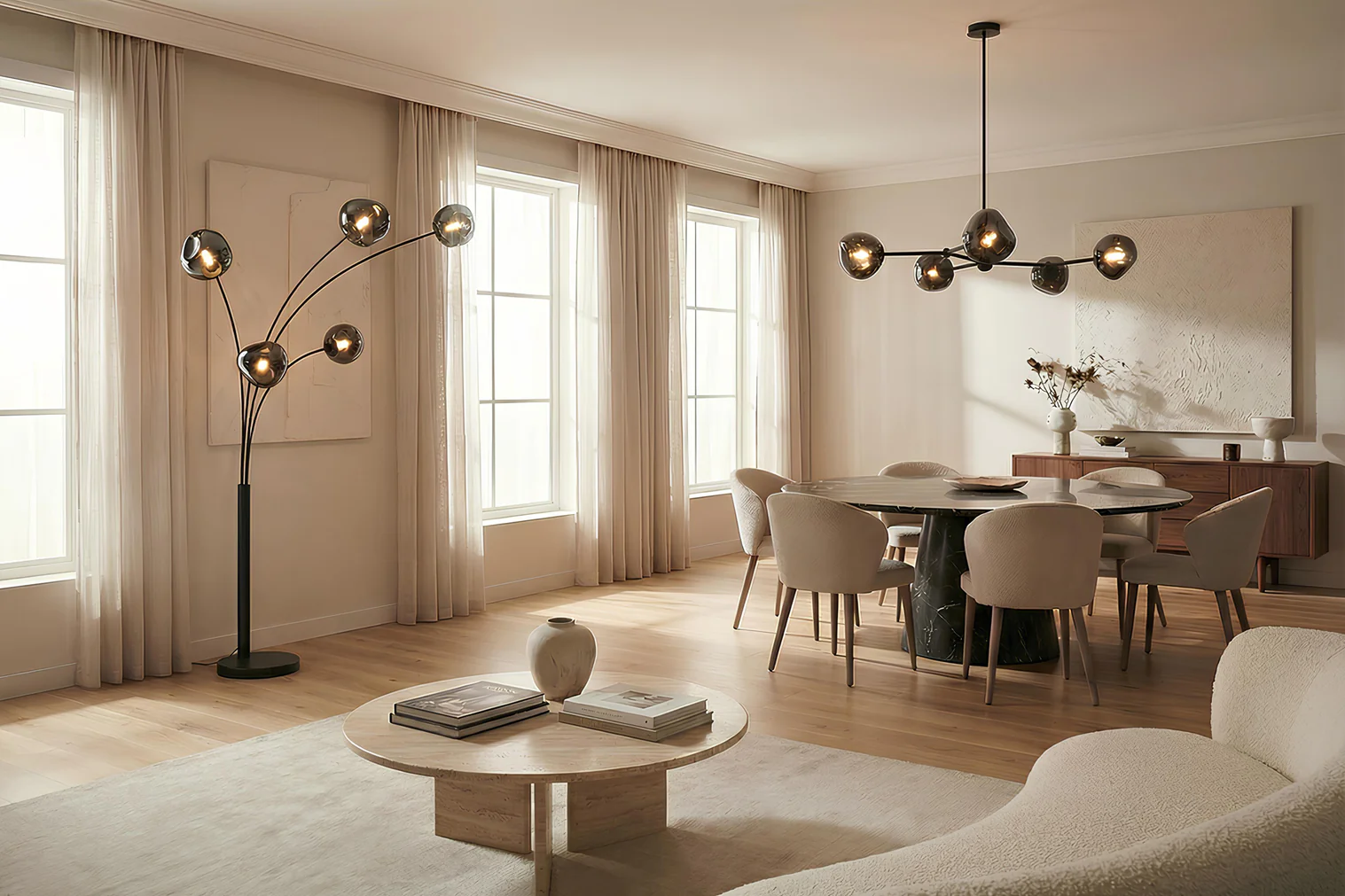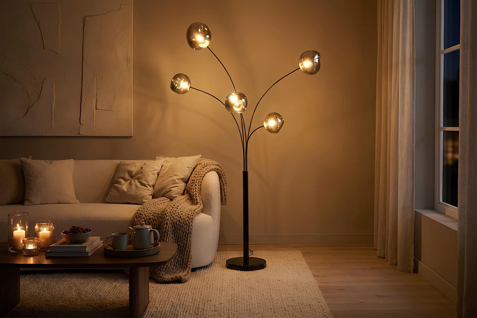 Senčniki talnih svetilk Fusion so oblikovani kot staljene steklene kroglice, njihova umirjena svetloba pa bo vsakemu prostoru dodala posebno vzdušje.