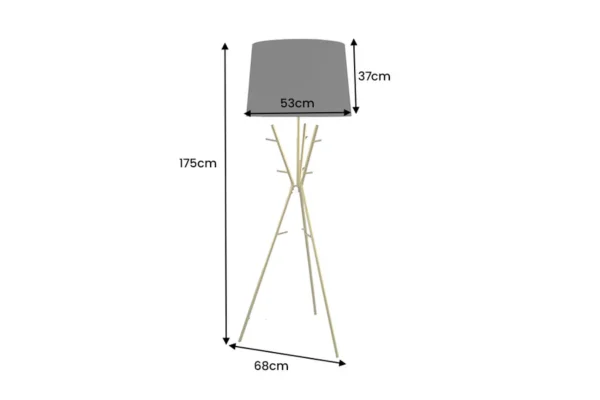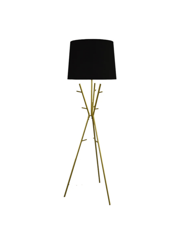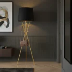 Talna svetilka Rami združuje črno tkaninsko senčilo z elegantnim zlatim podstavkom za prefinjen videz. Izdelana iz trpežnega kovinskega okvirja in visokokakovostnega tekstilnega senčila doda praktično osvetlitev in vizualni značaj sodobnim bivalnim in garderobnim prostorom.