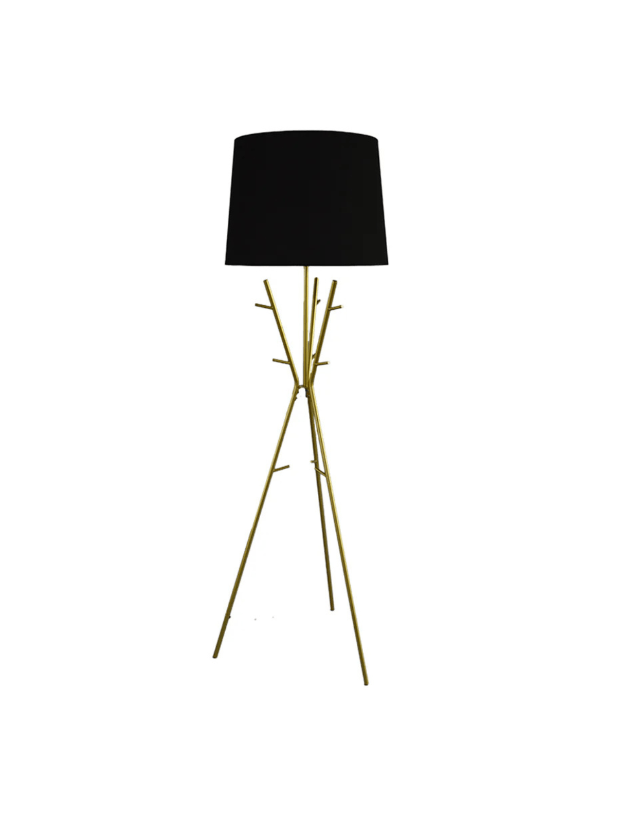 Talna svetilka Rami združuje črno tkaninsko senčilo z elegantnim zlatim podstavkom za prefinjen videz. Izdelana iz trpežnega kovinskega okvirja in visokokakovostnega tekstilnega senčila doda praktično osvetlitev in vizualni značaj sodobnim bivalnim in garderobnim prostorom.