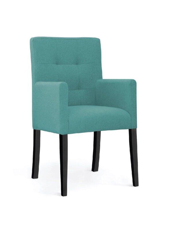| Udoben stol s povišanim naslonom lahko izbirate v različnih barvah materiala. Razen v jedilnici se bo čudovito prilegel tudi v lokalih in restavracijah. |