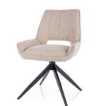 Vrtljiv jedilni stol Tell s funkcijo vračanja v prvotni položaj, oblazinjen v material Bjorn v bež odtenku, s sediščem, naslonjalom in rokonasloni zanimivega dizajna ter kovinskimi nogami, je na voljo v štirih odtenkih.